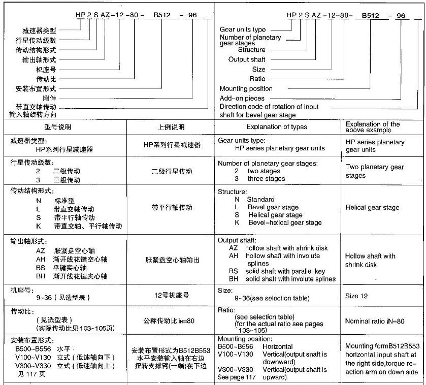 一 HP系列行星減速器型與標(biāo)記