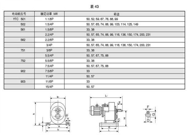 YTC系列小型齒輪減速電動(dòng)機(jī)是由Y系列電機(jī)與兩級(jí)圓柱斜齒輪減速機(jī)直接構(gòu)成一體的,適用于電動(dòng)機(jī)直接驅(qū)動(dòng)的低速傳動(dòng)裝置上,如礦山、冶金、制糖、造紙、化工、橡膠等工廠(chǎng)基建工地,它在低速傳動(dòng)時(shí),可直接驅(qū)動(dòng),不再附帶減速裝置,具有體積小、力矩大、使用靈活方便等特點(diǎn)。型號(hào)中T表示特殊型,C表示齒輪減速轉(zhuǎn)速,見(jiàn)表37,其外形及安裝尺寸見(jiàn)表38