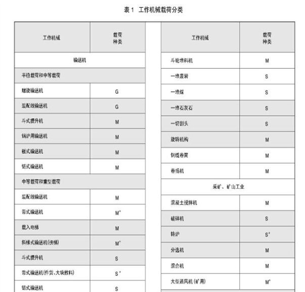 被驅動的工作機械載荷可分.平穩(wěn)載荷(G),中等沖擊載荷(M),重型沖擊載荷(S)及每天總是24h連續(xù)工作的工作
