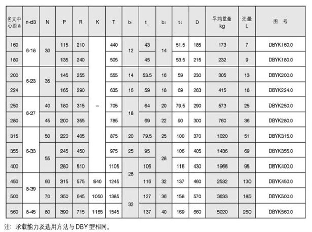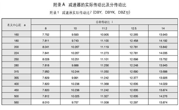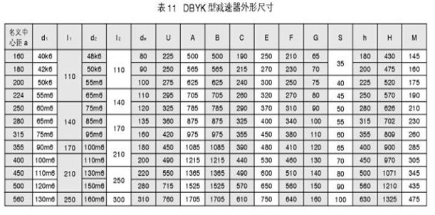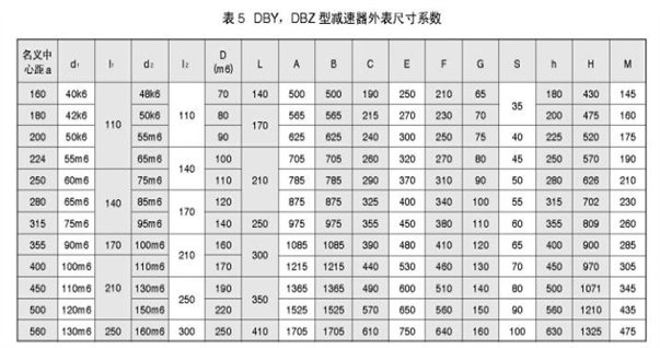 DBY、DBYK、DBZ型減速器各有12種規(guī)格,名義中心距為:160,180,200,224,250,280,315,355,400
