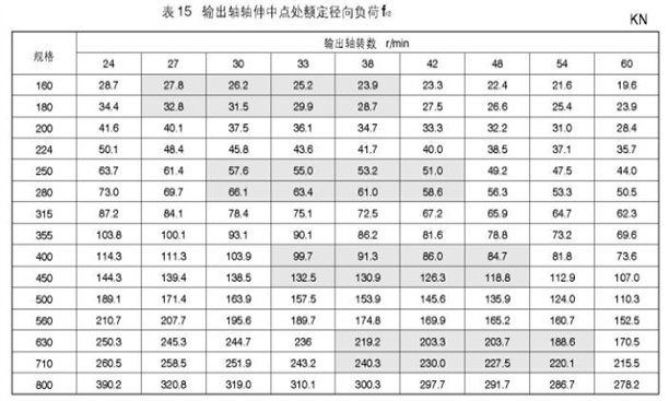 6 2輸出軸軸伸中點處的額定徑向負荷tz按表15選取。
